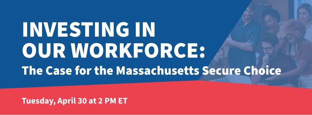 Join the Massachusetts Secure Choice Coalition and its partners on Tuesday, April 30 at 2 PM ET. They’ll be discussing The Massachusetts Secure Choice Savings Program Act. This bill aims to set up a state-run auto-savings program, offering small businesses and employers a free way to provide retirement savings options for their employees.